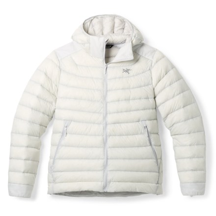 The Arc’teryx Cerium Hoody is a lightweight, technical down jacket designed to deliver a high warmth-to-weight ratio for alpine and backcountry use. Its hybrid insulation system combines high-quality 850-fill-power goose down with strategically placed Coreloft™ synthetic insulation in areas prone to moisture, helping maintain loft and warmth even when exposed to damp conditions. This engineered insulation approach gives the jacket a balance of warmth, breathability, and packability that appeals to weight-conscious outdoor adventurers. The shell and lining use lightweight Arato™ nylon fabrics with a durable water repellent (DWR) finish, providing light weather resistance and reducing moisture intrusion in cold, snowy environments. Articulated patterning and small underarm gussets improve mobility, while the insulated StormHood™ extends thermal coverage over the head without interfering with peripheral vision or layering under shells. This versatile hoody is at home both as a standalone cold-weather layer during breaks and camp use, and as a midlayer under a shell in unsettled conditions. At roughly 10.2 ounces (290 g), its packability and warmth make it a strong choice for alpine approaches, winter hiking, backpacking, and travel where minimal bulk and reliable heat retention are priorities. The women’s fit is tailored with a subtle taper at the waist and a bit more room in the hips compared with the men’s version, offering a comfortable silhouette that layers easily over baselayers or under shells. Slanted hand pockets provide accessible storage even when wearing a pack, and the overall construction supports dynamic movement without feeling restrictive.