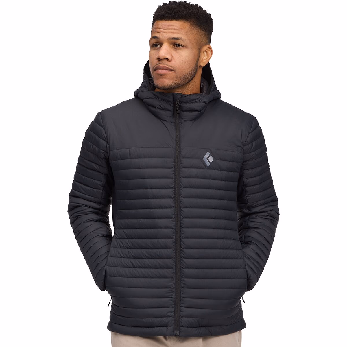 "What Our Gearhead® Experts Are Saying: ""I keep this in my pack on every high-elevation hike. The down insulation is super warm, but what sets it apart is the stretch fleece under the arms that moves with me instead of bunching up.""The Access Down 1. 0 Hooded Jacket is our go-to for lightweight warmth that never compromises movement. Built by Black Diamond to handle early morning ridge pushes, alpine belays, and brisk town transitions, it balances loft and breathability with smart design details we rely on every day. We love how the 700-fill traceable goose down traps serious warmth without adding bulk, while stretch-woven fleece panels under the arms give us the freedom to reach, scramble, or layer up. The 20D nylon shell keeps the jacket ultralight and easy to pack, and a DWR finish helps shed unexpected moisture. With an insulated hood, stretch knit cuffs, and three zippered pockets, this jacket stays ready for any cold-weather mission, big or small."