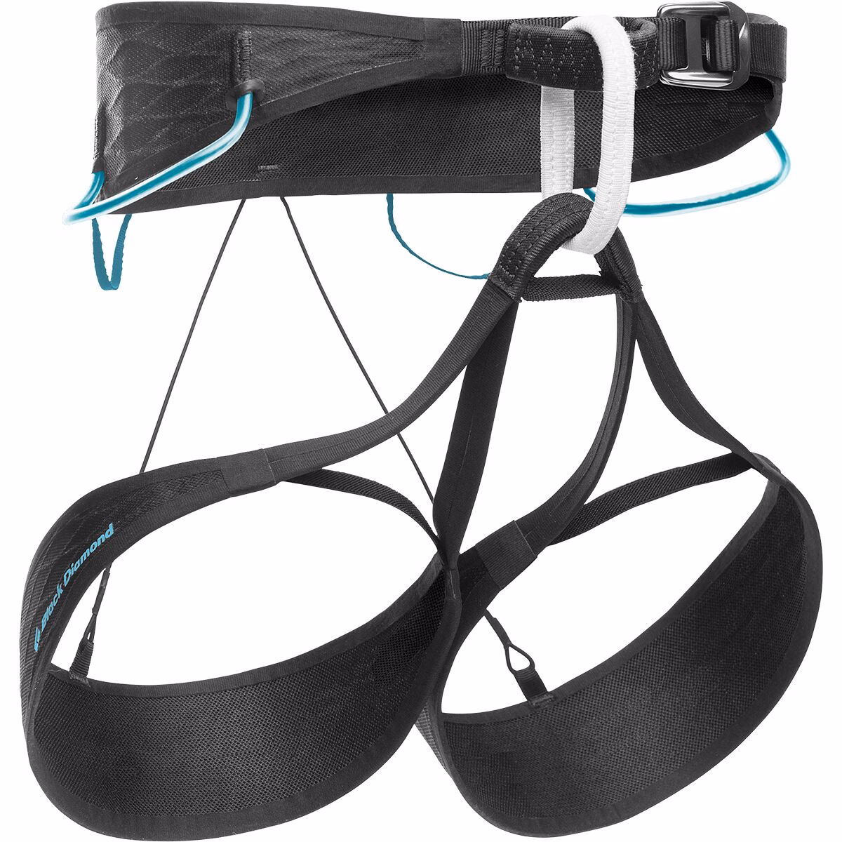 The AirNet Harness is Black Diamond's lightest, most breathable harness designed specifically for competition climbing. Its AirNet construction combines an abrasion-resistant shell with a soft, breathable, quick-drying lining, and Black Diamond's slim Dynex slings weave in between the two for load-balancing support and reliable durability. Everything else about this harness was designed to be as minimal and light as possible. There are rigid gear loops to the sides for quickly grabbing draws, and the webbing gear loops hold your belay devices and specs. BD's small logo at the back doubles as a chalk bag hanger.