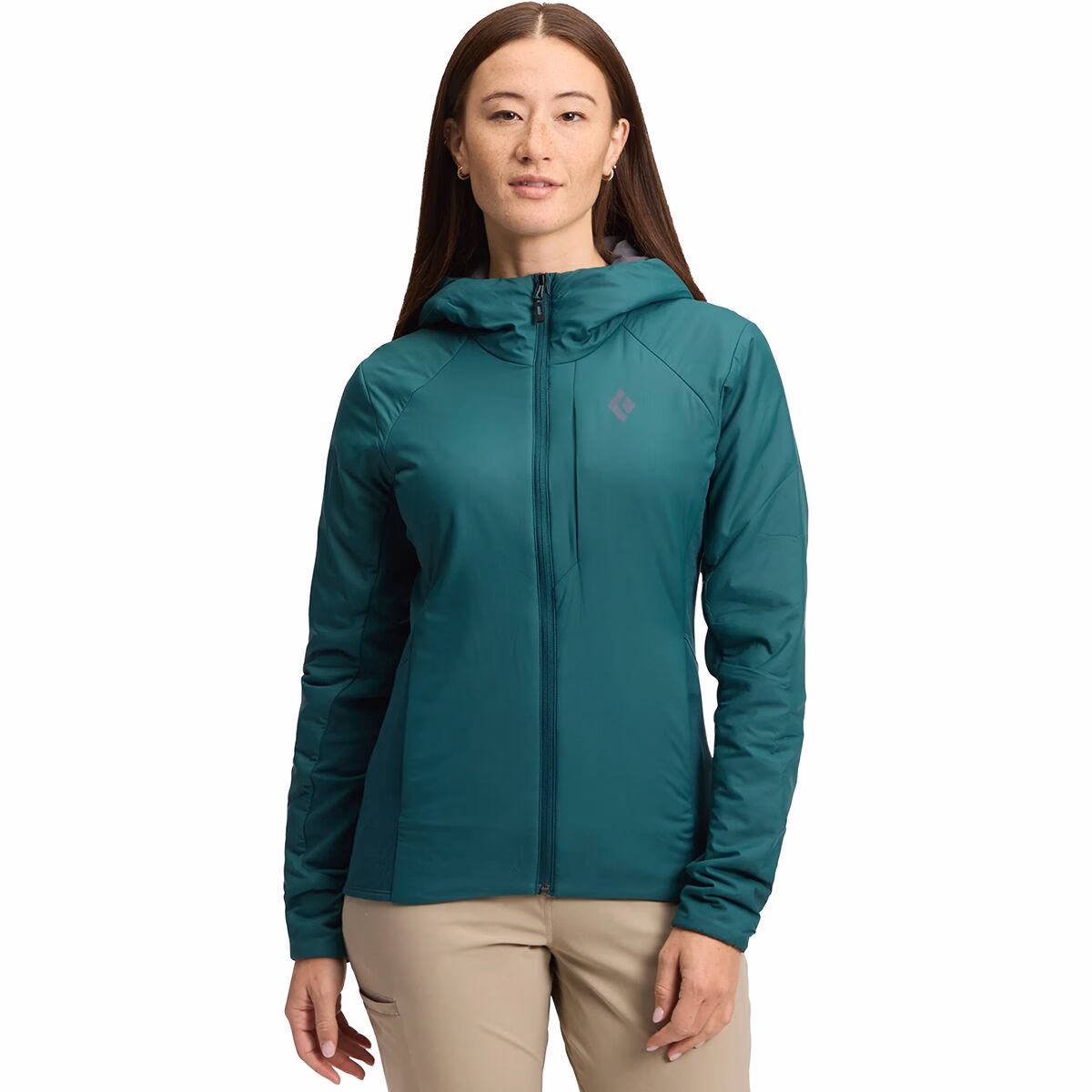 "What Our Gearhead® Experts Are Saying: ""This is my go-to midlayer for high-output alpine missions. It’s warm where I need it—like in the chest and hood—but breathes incredibly well, thanks to the merino blend panels. I’ve worn it on ski tours, early trail runs, and chilly climbs. It moves with me and never feels bulky."" For those chilly alpine starts and fast-paced ascents, we count on the Black Diamond First Light Hybrid Hooded Jacket to keep us warm without slowing us down. Designed to breathe, insulate, and move with us from dawn patrol to summit push, this midlayer has the versatility to adapt to a wide range of conditions. Black Diamond combines targeted insulation with natural fibers to strike that perfect balance between warmth and breathability. In high-exposure zones like the chest, hood, and arms, PrimaLoft Gold Active insulation keeps us comfortably warm, while merino-blend wool panels at the back and underarms increase breathability and mobility. The 20D stretch nylon ripstop shell is lightweight and coated with a PFAS-free DWR to shed light weather. Finished with a streamlined fit and a zippered chest pocket for essentials, the First Light Hybrid feels custom-built for moving fast and light in the mountains."