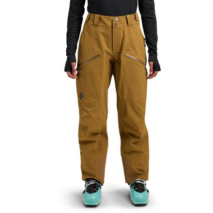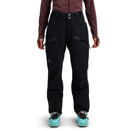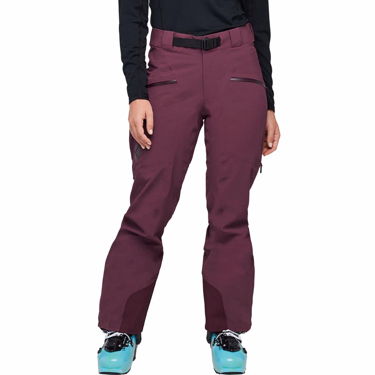 Whether your mission's objective is to lap the tram as many times as possible or to be descending before sunrise so you can get to work on time, the Black Diamond Recon Stretch Ski Pants want to come along. Their waterproof, breathable BD. dry membrane seals out snow and rain without trapping in vapor to keep you comfortable whether you're doing laps at the resort or hiking for your turns. Four-way stretch construction works with the articulated seat and knees to ensure that you can move without restriction and hold a natural stance without the discomfort of bunching fabric. Offset vents and 1/4-zip leg zippers ensure that you can vent heat when you need to and that you can easily access your boots without a hassle. Reinforced kick patches help the pants stand up to interactions with ski edges and crampons, extending their expected lifespan even if you're clumsy on dawn patrols.