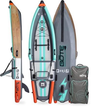 Why spend twice the price on a SUP and a Kayak when we can just buy the Deus Inflatable Kayak? Its versatile design makes it both a sit-on-top kayak and a super stable paddleboard for us live, laugh, lake types. BOTE built it with their high-strength AeroBote tech that gives us the confidence it won't be easily destroyed on long trips while also keeping its total weight down. When we want to do our paddling standing, we just remove the top chamber, get to our feet, and start pushing. It's as easy as that.