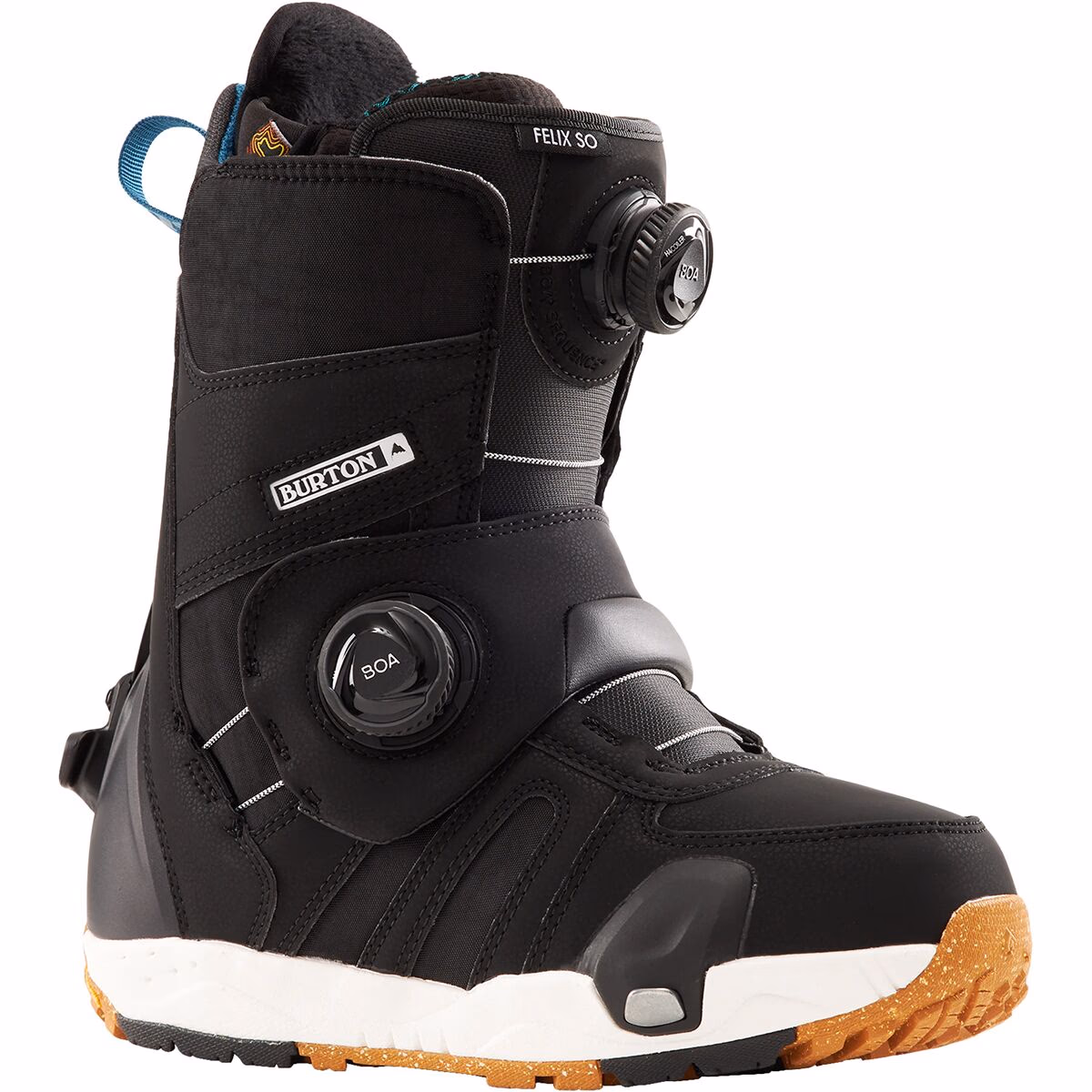 The Felix Step On Snowboard Boot is a top-tier option in Burton's line-up that provides a responsive flex pattern and generous support while effortlessly engaging into the Step On Bindings in mere seconds. This mid-stiff-flexing boot boasts a dual-zone Sequence BOA Fit System: the upper dial tightens the entire shell of the boot, and the ankle strap is controlled by a BOA dial for locked-down support at high speeds. Top it off with the Imprint 3 Liner and a women's-specific cuff for a broken-in feel straight out of the box, and we're ready to rip this versatile boot anywhere at the resort.