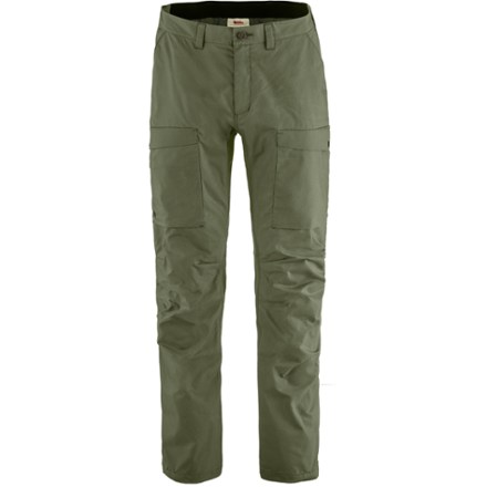 Versatile trekking pants, the men's Fjallraven Abisko Hybrid Trail trousers have a durable, weather-resistant fabric on the front and a stretchy fabric on the back for comfort on rugged trails.