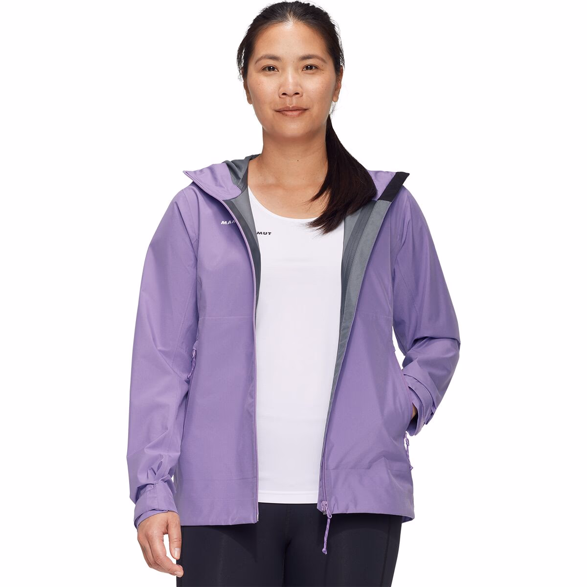 The weather can change quickly when we're hiking through mountain passes and alpine meadows, luckily, the Mammut Alto Light HS Hooded Jacket packs down small and offers uncompromising protection so we can brave the storms. The Mammut DRY Tour laminate keeps rain from seeping through and drenching our layers, ensuring we stay warm and dry all day long. The two zippered underarm vents allow us to control our level of ventilation, circulating out hot air on long climbs and sealing heat in as we enjoy our time on the summit. The lightweight construction and compact design allow the jacket to easily slip into our backpack, so we can pack it along for any adventure.