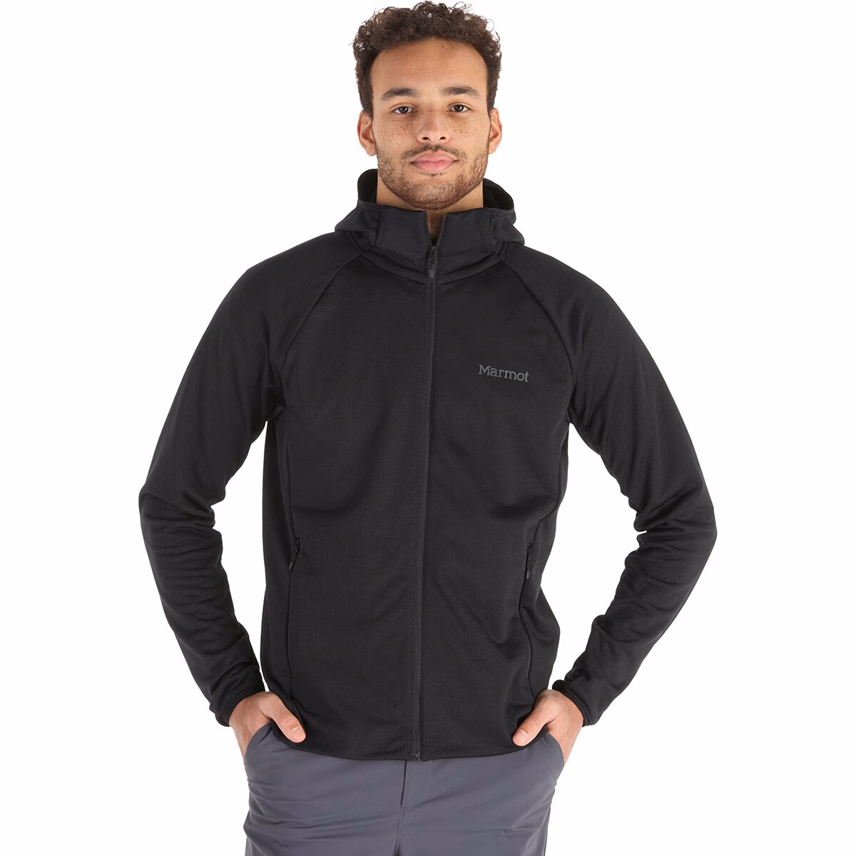 Made from a warm grid fleece, this Marmot hoodie breathes well but traps air for more warmth under a shell. It's lightweight and stretchy so you can wear it all day as conditions and output change.