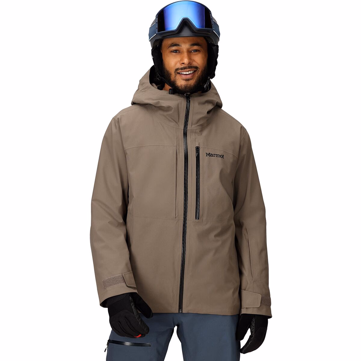 The Marmot Refuge Jacket (Men’s) is a purpose-built ski and snow shell designed to keep riders dry and comfortable in cold, wet winter conditions. Engineered with NanoPro™ waterproof/breathable fabric and fully sealed construction, it delivers robust protection against wind, rain, and snow on resort slopes and in backcountry conditions without insulation, promoting versatile layering depending on activity and temperature. This jacket’s design places emphasis on weather protection and utility rather than thermal output; as an uninsulated shell, it pairs well with base layers and insulating midlayers for cold weather performance. Its helmet-compatible adjustable hood and pit zips help regulate temperature and keep precipitation out during heavy weather or high-intensity efforts. Functionality on the mountain is a strong suit. The Refuge’s multiple secure zippered pockets give ample room for essentials, while features such as thumbhole cuffs, a powder skirt, and Velcro® adjustable cuffs help keep snow from entering the jacket at critical points. These details underscore its focus on skiing and snowboarding use, though it also performs well as a general purpose winter shell when layered appropriately. The regular fit accommodates layering comfortably beneath the shell, and underarm ventilation zippers let users dump heat when they’re climbing, hiking, or trekking between lifts. The Refuge’s blend of weather resistance, practical storage, and mountain-oriented design positions it as a reliable outer layer for resort and alpine use.