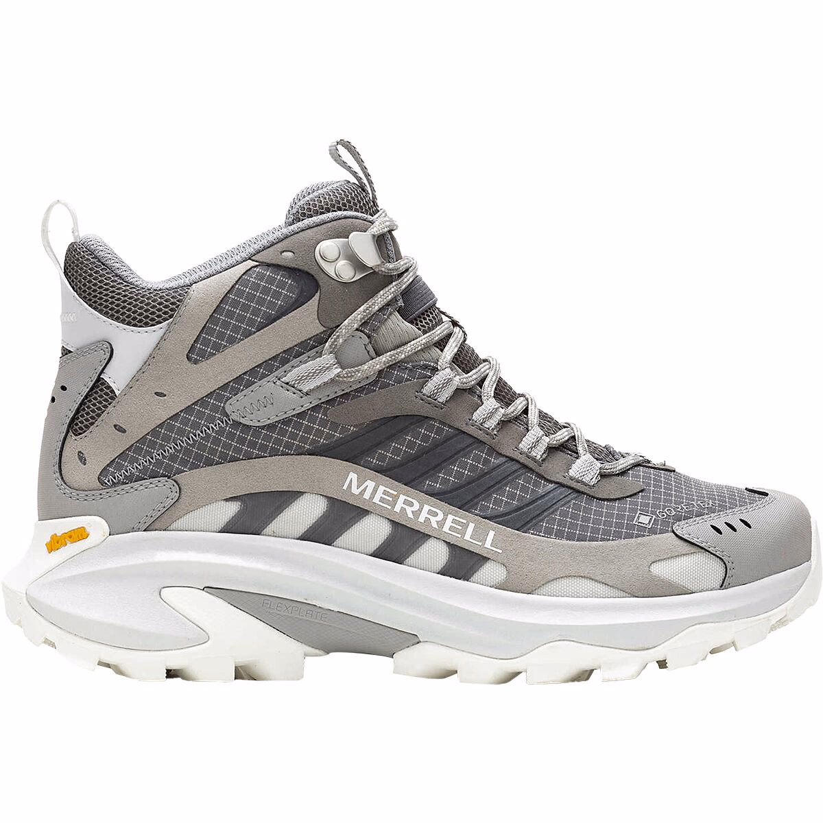 The Merrell Moab Speed 2 Mid GTX (Women’s) is a versatile, waterproof hiking shoe-boot hybrid built for outdoor enthusiasts who want trail confidence, comfort, and protection without the bulk of a traditional boot. Drawing on the heritage of Merrell’s popular Moab family, this mid-height version features a GORE-TEX® waterproof membrane that helps keep feet dry in rain, mud, and wet grass — while still allowing internal moisture vapor to escape for breathability on long days outdoors. Constructed with a durable nylon ripstop and TPU upper, the Moab Speed 2 Mid GTX blends rugged performance with lightweight agility. Protective synthetic heel and toe caps guard against trail debris and trail knocks, while dual heel and tongue loops make it easy to get in and out of the boot. A padded mid-height collar and bellows tongue help keep out rocks and dirt, enhancing comfort on uneven terrain. Underfoot, Merrell’s FloatPro™ foam midsole delivers cushioned comfort and energy return, while the Vibram® TC5+ outsole with multi-direction lugs provides confident traction across wet rock, dirt, and forest trails. Integrated FlexPlate™ technology adds torsional rigidity and stability without excess weight — making this boot ideal for day hikes, mixed trails, and unpredictable weather conditions. Whether you’re tackling damp woodland routes or long approaches to summit views, the Moab Speed 2 Mid GTX strikes a strong balance of protection, grip, and all-day comfort that suits a wide range of outdoor adventures.