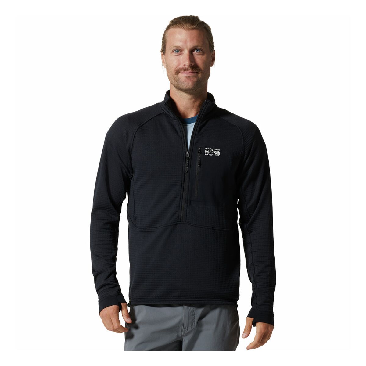 "What Our Gearhead® Experts Are Saying: ""I bring the Power Grid Half-Zip on almost every trip—it’s insanely breathable, layers well under a shell, and keeps me dry even when I’m working hard. Whether I’m skinning uphill or backpacking in shoulder season, it’s one of the most reliable midlayers I’ve owned."" We count on the Mountain Hardwear Polartec Power Grid Half-Zip Jacket as a go-to midlayer for everything from alpine climbs to multi-day treks. Designed with Polartec’s advanced grid fleece, it balances warmth and breathability better than traditional insulation, keeping us dry and comfortable when we’re pushing hard in cold conditions. Whether we’re booting up icy gullies or backpacking under shifting skies, this piece always earns its spot in our pack. Its streamlined design features stretch-knit side panels for improved mobility, a chest zip pocket for quick storage, and thumbholes at the cuffs for secure layering. Recycled content helps reduce its impact, while reflective details add visibility during late returns to the trailhead. Simple, technical, and ultra-functional, this half-zip is an essential part of our cold-weather layering system."