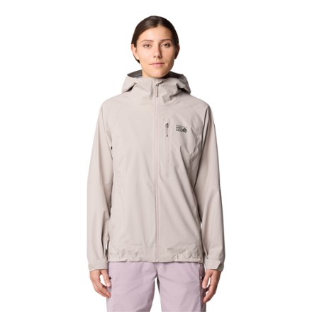 The Stretch Ozonic Jacket from Mountain Hardwear is our lightweight layer of choice when our day includes anything from a wet commute to a casual adventure on a rainy day. Its Dry. Q 2. 5-layer construction keeps us sheltered from the cold wind and pouring rain, while its stash-away hand pocket lets us carry it in our pack between uses.