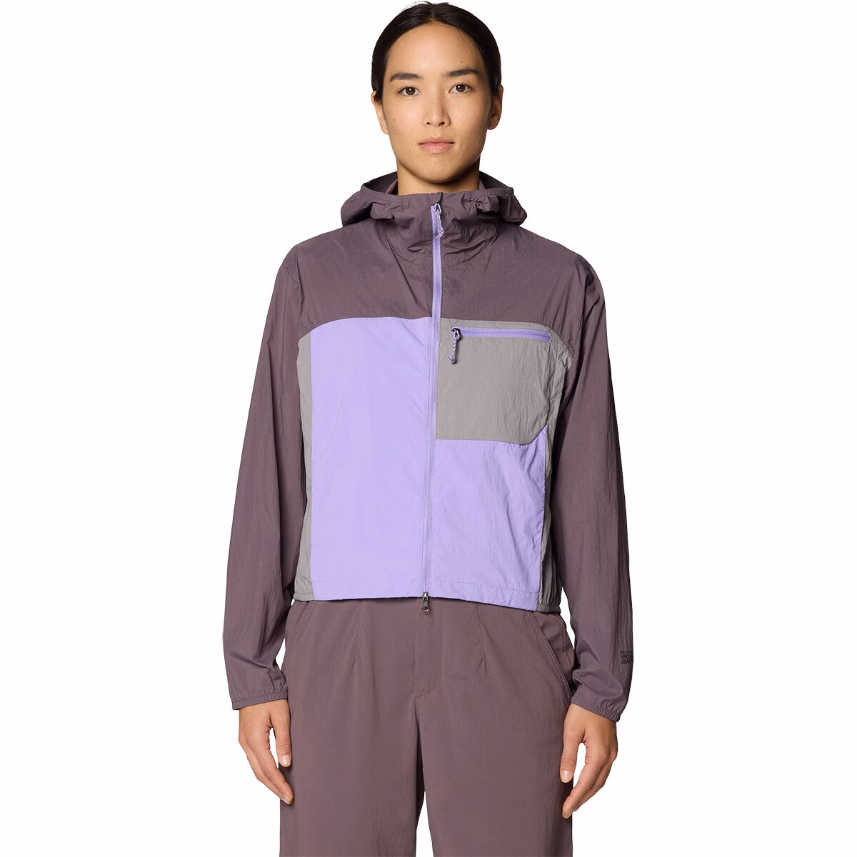 Taking on breezy hikes or gusty commutes? This lightweight wind jacket from Mountain Hardwear has you covered. The 3-piece hood has an elastic binding and halo cinch to seal in warmth.
