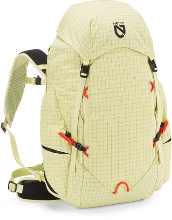 Made with an abrasion-resistant, water-resistant exterior, the women's NEMO Resolve 35 L Endless Promise Technical Active pack can be configured for both day hikes and overnights.