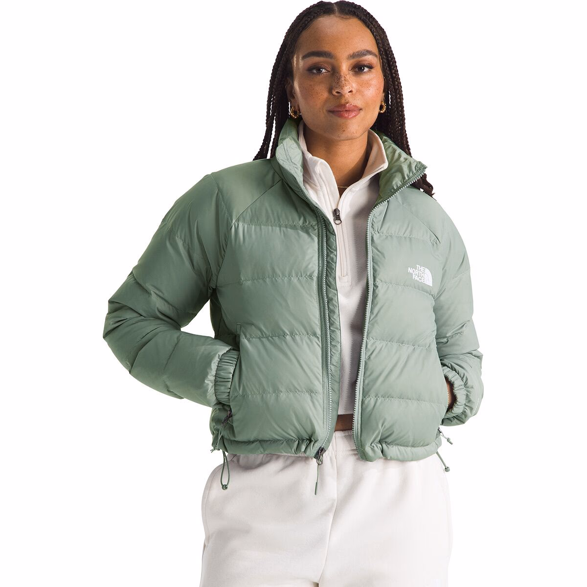 Built with a chic crop cut and filled with lofty, heat-trapping insulation, The North Face Hydrenalite Down Jacket helps us combat cold temps in style. Raglan sleeves keep us hailing cabs with ease, while the stretch cuffs and hem cinch stop our body heat from drifting out. Plus, this puffy is construction with 100% recycled materials to keep us feeling all warm and fuzzy on the inside too.