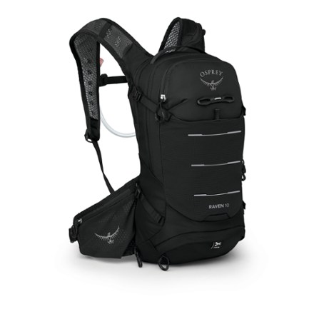 Ride all day with the women's Osprey Raven 10 hydration pack. Winged shoulder harness and air-mesh wrap hipbelt keep the pack stable and secure, and hipbelt pockets offer easy access to snacks.