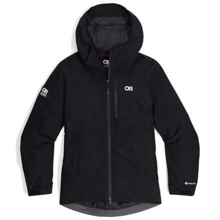 Combining the warmth of insulation with the breathability of a hard shell, the women's Outdoor Research Tungsten II Insulated Jacket is snow-day ready with pit zips and a helmet-compatible hood.