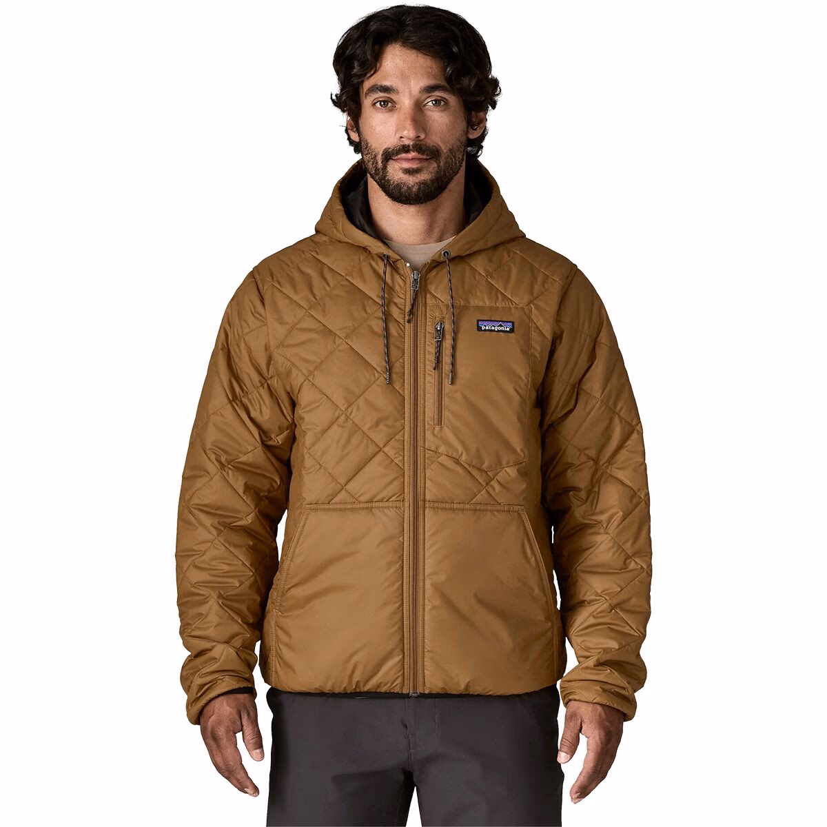 The Patagonia Men’s Diamond Quilted Insulated Bomber Hoody is a casual insulated jacket designed to provide reliable warmth in cool to cold conditions while maintaining a relaxed, everyday style. Its bomber-inspired silhouette combines classic design elements with functional synthetic insulation, making it suitable for daily wear, commuting, and travel during colder seasons. The jacket features diamond quilting that helps stabilize the synthetic insulation and distribute warmth evenly across the garment. This quilted construction also contributes to durability and helps prevent insulation from shifting over time. The outer shell is made from recycled polyester fabric designed to provide light wind resistance and everyday durability, while the insulation retains warmth even in damp conditions compared to traditional down. An integrated hood adds additional coverage for colder or windy weather, expanding the jacket’s practicality in urban environments and casual outdoor settings. Rib-knit trim at the cuffs and hem helps seal in warmth and maintain the classic bomber-style fit. The full-length zipper allows for easy temperature regulation and layering over sweaters or base layers. As with many Patagonia garments, the Diamond Quilted Insulated Bomber Hoody incorporates recycled materials in its construction and emphasizes long-term durability. The result is a versatile insulated jacket that balances warmth, everyday comfort, and a casual aesthetic suitable for daily use in cooler climates.