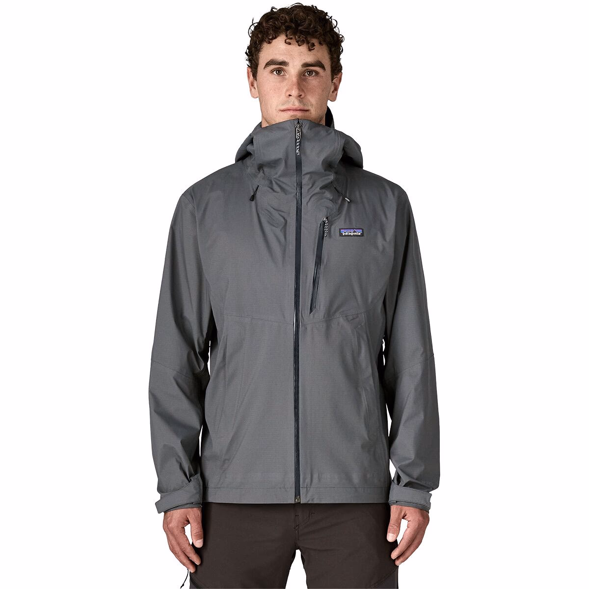 It’s a men’s waterproof rain jacket built with Patagonia’s H2No® Performance Standard 3-layer construction for reliable protection against rain and wind during outdoor activities and everyday use.