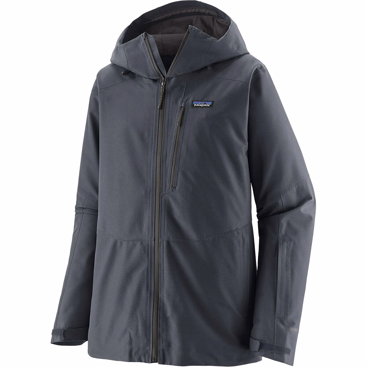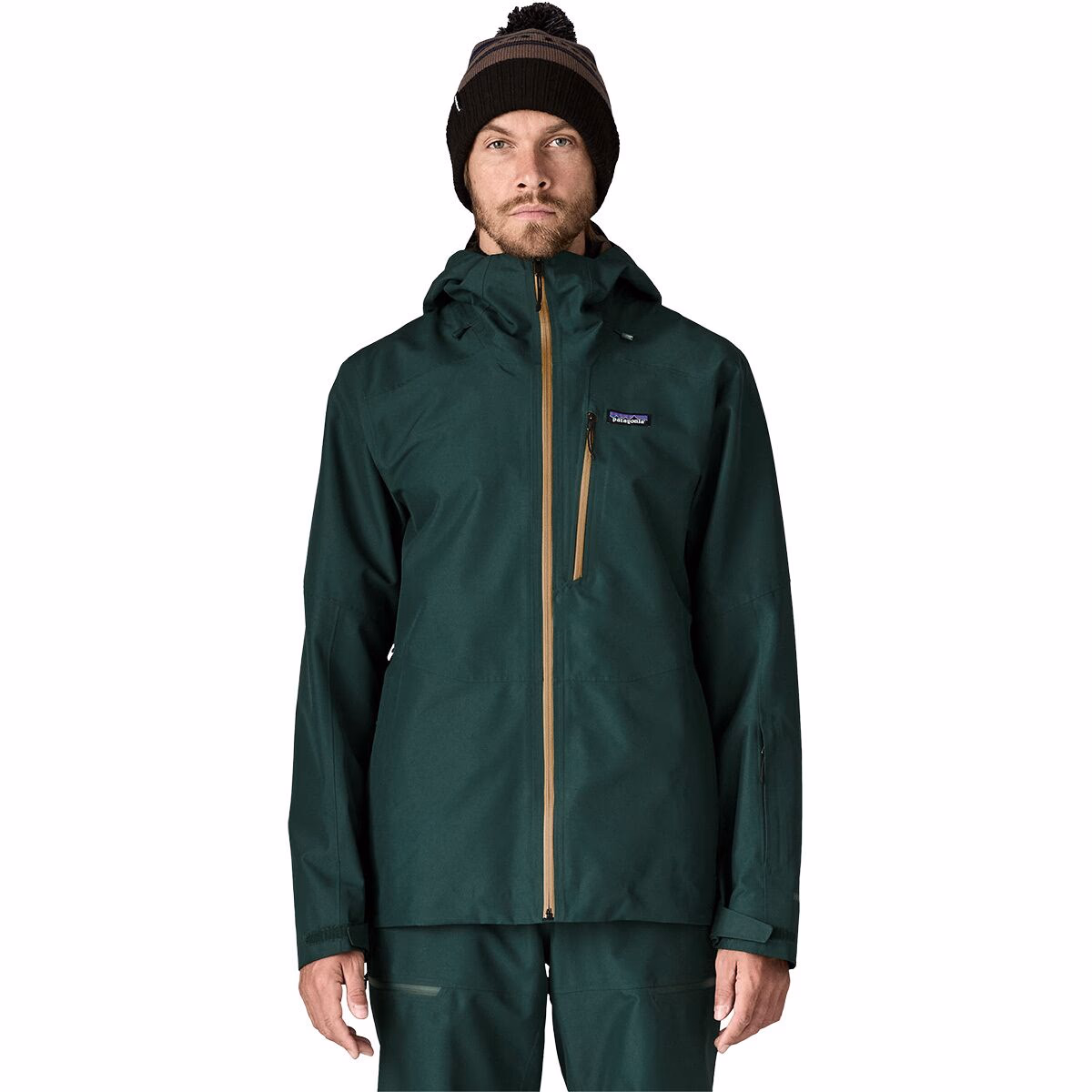 The Patagonia Men’s Powder Town Jacket is a technical ski and snowboard shell designed for resort and all-mountain riding in cold, wet winter conditions. It focuses on dependable weather protection, mobility, and snow-specific features while maintaining a relatively streamlined design that works well for layering. Built with Patagonia’s proprietary waterproof system, the jacket aims to deliver reliable protection throughout long days on the mountain. The jacket uses a 2-layer H2No® Performance Standard shell made from recycled polyester. This waterproof and breathable fabric helps keep snow, wind, and moisture out while allowing excess heat and moisture vapor to escape during activity. The shell is treated with a PFC-free durable water-repellent (DWR) finish, encouraging water and snow to bead off the surface. Inside, a mesh lining promotes airflow and allows the jacket to slide comfortably over base layers or insulating layers. Designed specifically for winter sports, the Powder Town Jacket includes a helmet-compatible adjustable hood with laminated visor to help maintain visibility during storms. A tall collar provides additional protection around the neck and face when the hood is down. The jacket also incorporates pit-zip ventilation, which allows excess heat to escape during intense activity or warmer spring conditions. Snow-specific features include a low-profile powder skirt that helps prevent snow from entering the jacket during falls or deep powder runs. The jacket can also connect to compatible Patagonia snow pants using a rear webbing loop. Multiple storage options are included, such as hand-warmer pockets, a chest pocket, a forearm ski-pass pocket, and internal storage for goggles or gloves. A concealed RECCO® reflector provides an additional safety feature that can assist rescue teams in search operations. Overall, the Powder Town Jacket is designed as a durable and versatile snow-sports shell. Its combination of waterproof protection, ventilation, and practical ski-specific features makes it suitable for skiers and snowboarders seeking a reliable outer layer for resort and all-mountain conditions. Independent testing notes that the jacket offers a comfortable fit and practical feature set, though it relies on layering for warmth since it does not include built-in insulation.