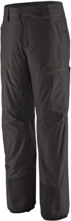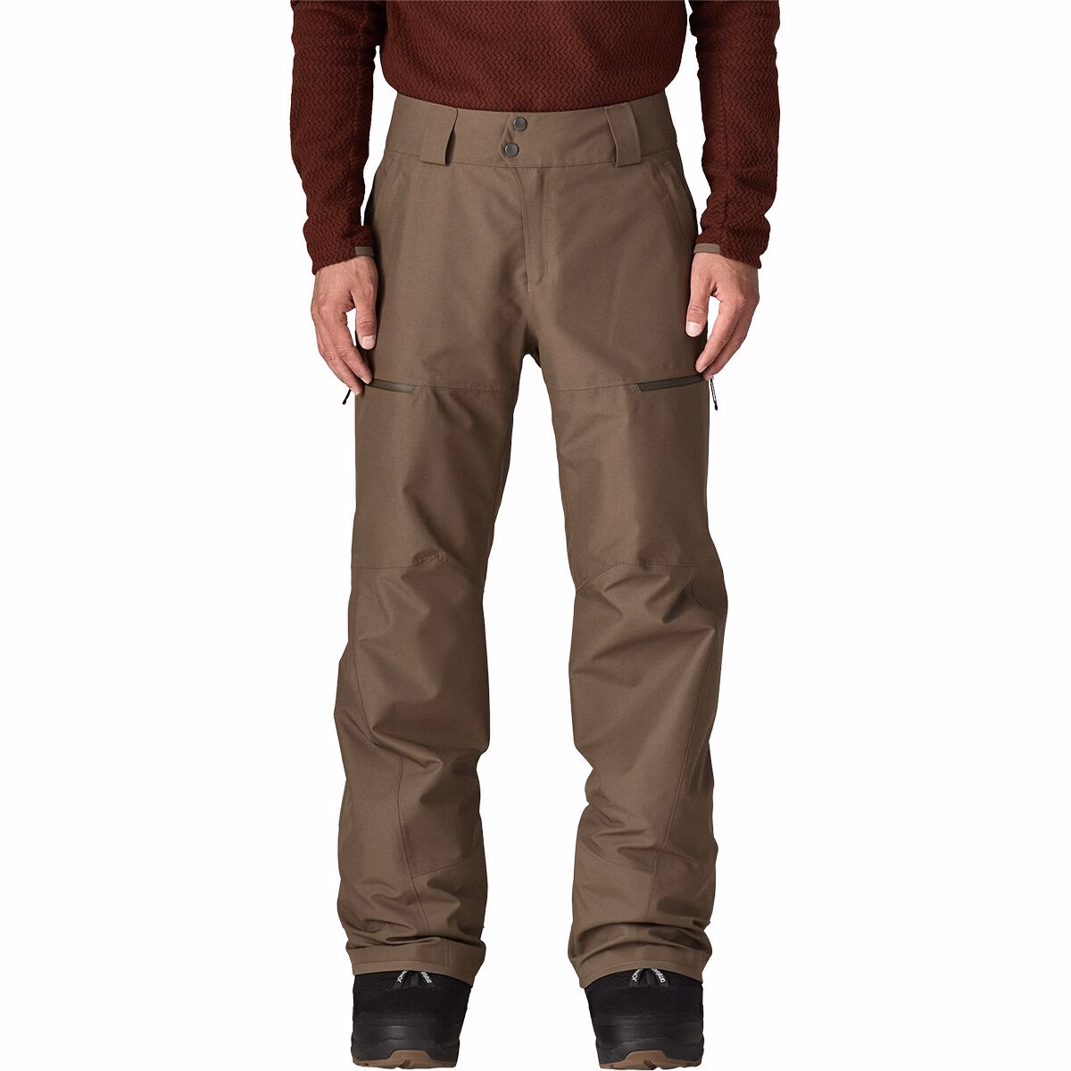 The Patagonia Men’s Powder Town Pants are technical snow pants designed for skiing and snowboarding in cold, wet winter conditions. Built as a protective outer shell, they focus on waterproof weather protection, mobility, and practical on-mountain features. The design prioritizes versatility for resort and all-mountain use, allowing riders to layer insulation underneath depending on temperature and activity level. The pants use a 2-layer H2No® Performance Standard waterproof and breathable shell, which helps block wind, snow, and moisture while allowing heat and vapor to escape during activity. This fabric construction is paired with a durable water-repellent (DWR) finish to encourage water and snow to bead off the surface. Inside, a smooth lining helps the pants slide easily over base layers and improves comfort during long days on the slopes. Designed for freedom of movement, the Powder Town Pants feature an articulated fit that allows unrestricted mobility when skiing, snowboarding, or hiking short distances across the resort. The pants also include mesh-lined outer-thigh ventilation zippers that allow excess heat to escape during active riding or warmer spring conditions. Integrated snow gaiters seal around ski boots to keep powder from entering the cuffs. Durability is addressed through reinforced scuff guards at the lower legs that help protect against abrasion from ski edges or boots. Additional features include multiple pockets for small essentials and a built-in RECCO® reflector, which can assist rescue teams in locating the wearer during emergency search operations. Overall, the Men’s Powder Town Pants are designed as a dependable shell for resort skiing and snowboarding. Their waterproof construction, ventilation features, and durable materials make them suitable for riders who want adaptable protection across a wide range of winter conditions.