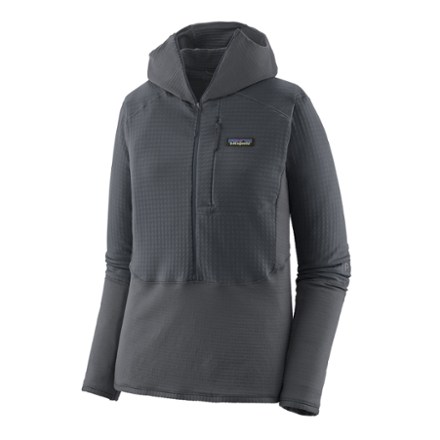 A technical fleece layer for stop-start activities in cool conditions, the women's Patagonia R1 Pullover hoody has a grid pattern to trap heat and wick sweat while providing light, stretchy warmth.
