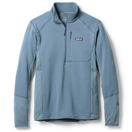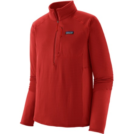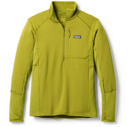Lightweight and packable, the men's hybridized Patagonia R1 Pullover is a versatile mid layer made with stretchy Polartec Power Grid fabrics to keep you comfortable on cool days in the mountains.