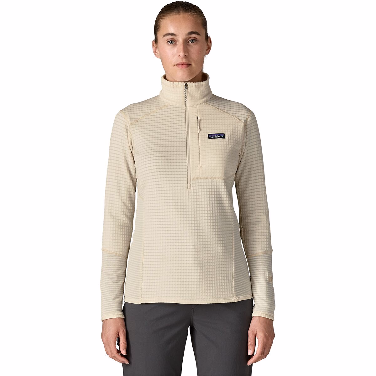 The Patagonia R1 Pullover is a women’s technical fleece midlayer designed to provide breathable warmth, efficient moisture management, and stretch for active outdoor use.