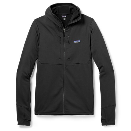 The Patagonia R1 Hoody is a men’s technical fleece midlayer with a hood, built for breathability, stretch, and moisture management during active outdoor use.