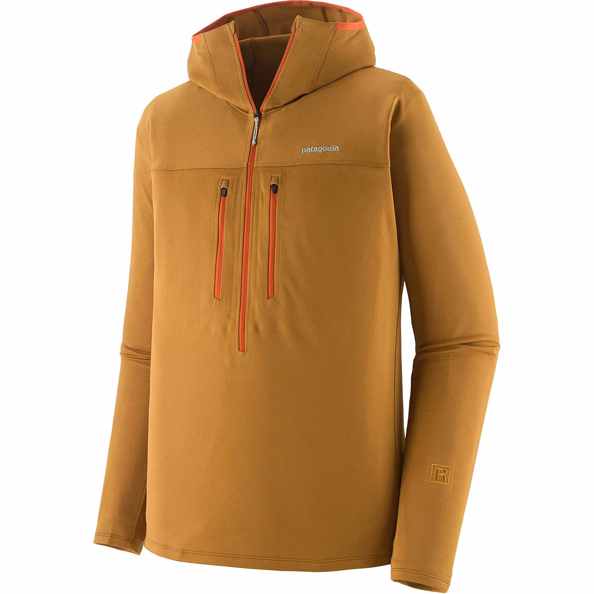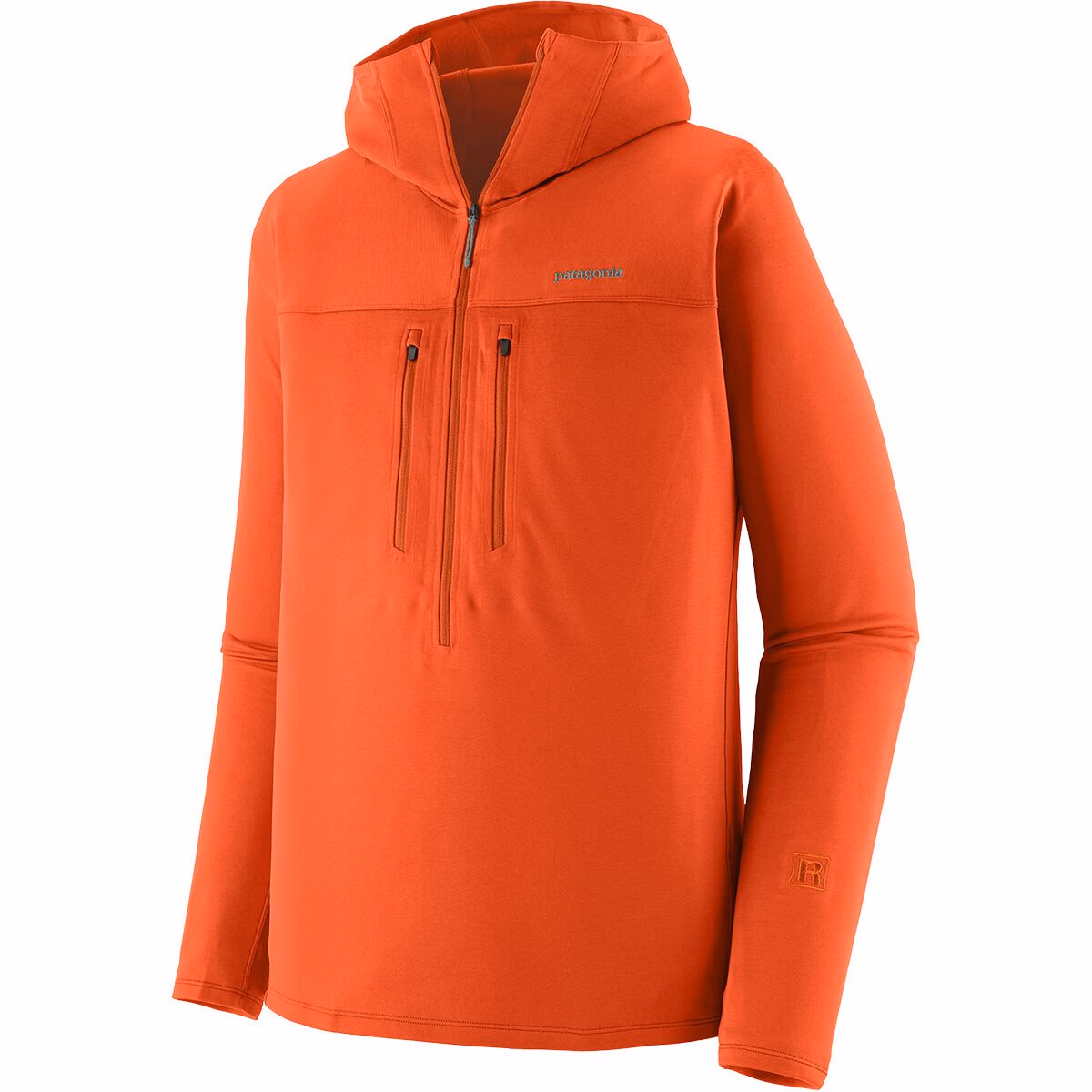 The Patagonia Men’s R1 Ultralight Hoody is a lightweight technical fleece designed for high-output activities in cool conditions. As part of Patagonia’s R1 series, the hoody focuses on breathability, moisture management, and low weight, making it suitable for pursuits such as climbing, trail running, alpine hiking, and fast-paced backcountry travel. The garment is built from Polartec® Power Grid™ fabric, a lightweight fleece made primarily from recycled polyester with elastane for stretch. The grid-pattern construction helps trap warmth while improving airflow and moisture transport during activity. This structure allows the hoody to provide light insulation while remaining highly breathable, which can help prevent overheating during sustained movement. The minimalist design reduces bulk and improves packability, allowing the hoody to function as either a base layer or a lightweight midlayer depending on conditions. A close-fitting hood provides additional warmth and can fit comfortably under a climbing or ski helmet. The slim performance fit and stretch construction allow unrestricted mobility during technical movement. Additional details include offset shoulder seams that reduce friction under backpack straps and low-profile cuffs that allow easy layering. With its balance of lightweight warmth, breathability, and mobility, the R1 Ultralight Hoody is intended for aerobic mountain activities where efficient temperature regulation and minimal weight are priorities.