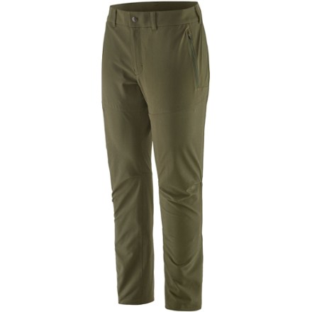 What Our Gearhead® Experts Are Saying:""I like these for full-day hikes when the forecast can’t make up its mind. They’re light, stretchy, and shed just enough moisture to keep things comfortable. The pocket layout is smart, too — secure without feeling bulky.""Long approaches, shaded forest paths, and exposed ridgelines all call for pants that move naturally with every step. The Patagonia Terravia Trail Pants balance lightweight durability with comfortable stretch, giving us the freedom to trek through rolling miles without feeling restricted. Their breathable plain-weave construction helps regulate temperature during steady climbs, while the articulated patterning supports confident movement across varied terrain. A durable water-repellent finish adds reassurance when the trail turns damp, and the streamlined fit layers easily over baselayers in shifting weather. Zippered pockets secure small essentials without interrupting motion, making these pants just as useful for travel days as they are for weekend missions. Versatile, comfortable, and trail-focused, the Terravia Trail Pants are ready for everything from warm afternoon hikes to cool dawn starts.