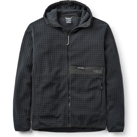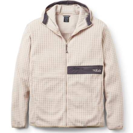 Whether you're gearing up for the ascent or kicking back during downtime, this Rab fleece hoodie offers low-bulk warmth. It's made with a breathable grid fleece fabric. And it has a comfy relaxed fit.