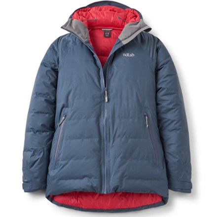 Built with a taped Pertex Shield outer and filled with recycled 700-fill-power down, the women's Rab Valiance Waterproof down jacket is warm and windproof to withstand cold, rough weather.