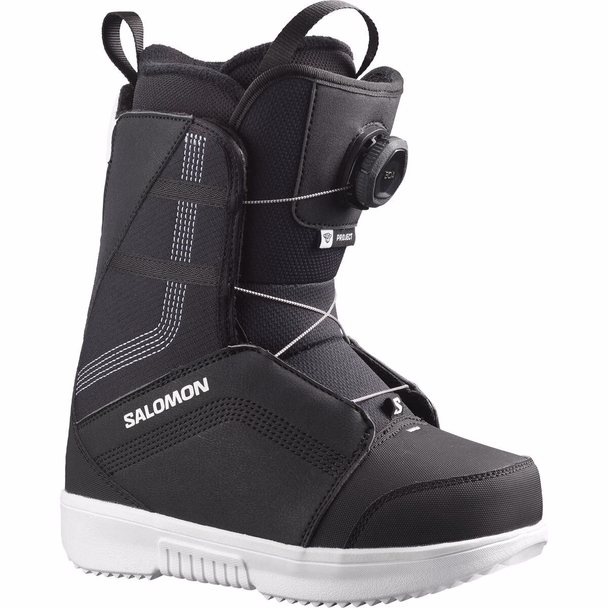 "What Our Gearhead® Experts Are Saying:""The Project BOA is my favorite pick for kids who are starting to ride more seriously. It’s super easy to get on and adjust, and the liner grows with them, which is a win for parents. Plus, the fit and flex feel like a real boot—just sized for groms.""Built for the next generation of shredders, the Salomon Project BOA Snowboard Boot helps young riders progress in comfort, confidence, and style. With a forgiving flex and easy-to-use M4 Junior BOA® system, the Project makes gearing up simple and secure—no wrestling with laces or second-guessing fit. The heat-moldable Custom Fit™ liner adapts to growing feet, while an adjustable Evolution footbed gives parents a little more time before the next size-up is needed. From first turns to full days on the mountain, the lightweight D-Light outsole and compact FTR construction keep things low-profile and comfortable, delivering just the right amount of support without overwhelming new riders. Designed to look, feel, and ride like the grown-up boots, the Project BOA gives young snowboarders the performance they need to level up."