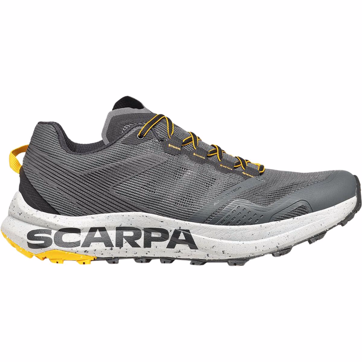 Built for long-distance trail running, the Scarpa Spin Planet Running Shoe absorbs impact and provides protective cushioning with its excellent midsole volume. These shoes are comfortable on our feet but also comfortable in our minds, as they feature an eco-friendly construction with a 100% recycled upper, 45% recycled EVA midsole, 30% recycled rubber outsole, and a recycled microfiber lining.