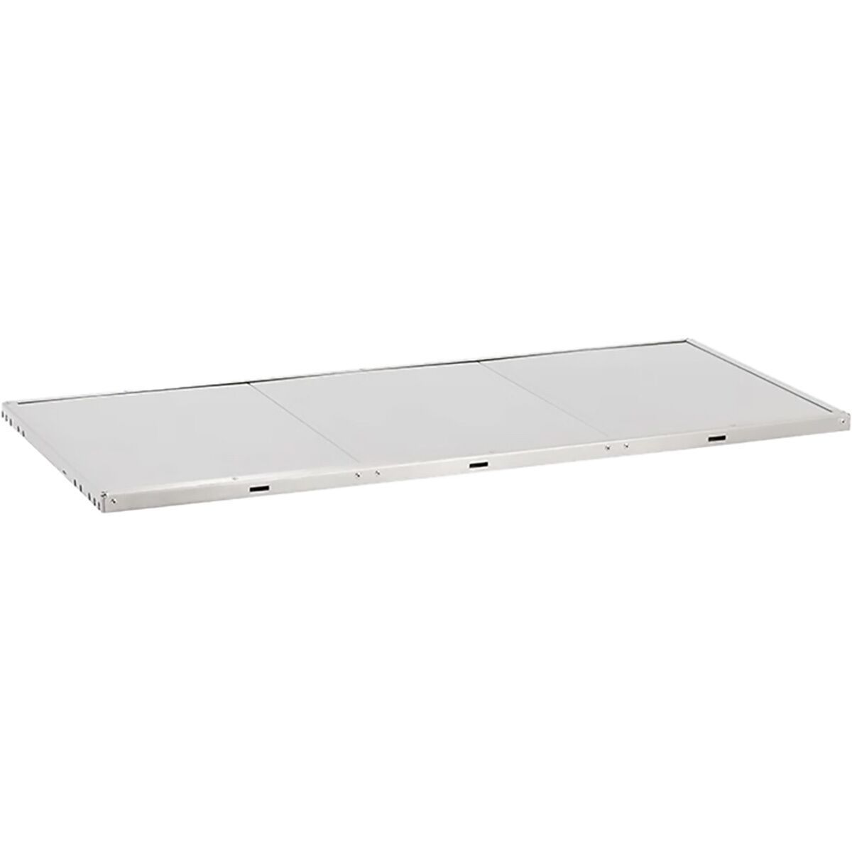 The Stainless Kitchen Tabletop adds an extra shelf to our Snow Peak Stainless Steel Kitchen Table, freeing up space on the top shelf for us to prep and cook. We simply insert the tabletop into the frame with the included connection pieces for quick and easy storage space.