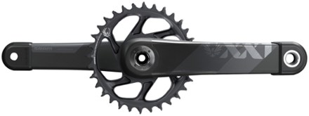 Weighing a paltry 422 grams, the SRAM XX1 Eagle DUB SL Boost Crankset is one of the lightest cranks available on the market, lending itself to professional racers and discerning cross-country riders shaving weight from their Eagle 12-speed drivetrain. You'll find it's approximately 43 grams lighter than previous XX1 Eagle Cranksets with its new spindle diameter and Carbon Tuned crank arms (80 grams less with DUB bottom bracket), which is a big deal when you're counting every last gram that goes on your cross-country race bike. Additionally, it retains the quiet, mud-shedding performance of the X-Sync 2 chainring, plus the ability to retain your chain without a guide. This particular version is made for the 12 x 148-millimeter rear axle found on modern bikes with Boost spacing. Not only is the XX1 Eagle DUB SL Crankset lighter than ever, but it's more durable with its newly introduced 28. 99-millimeter spindle diameter, versus the previous 30 and 24-millimeter spindles used by SRAM. SRAM termed this new standard as DUB, which stands for Durable Unified Bottom Bracket, seeing it's compatible with virtually any bottom bracket standard on the market—whether your frame's using a threaded, Press Fit, BB30, or PF30 bottom bracket. Upon introducing this 28. 99-millimeter spindle diameter, SRAM aimed to improve bearing longevity and seal out moisture, then designed the spindle diameter to meet these needs, meaning it's ready for riding and racing in the wettest, nastiest conditions of the year. This lead SRAM to engineer a new crankset that's every bit as stiff as those with 30-millimeter spindles, but one that provides the increased bearing life of 24-millimeter spindles. It's really a simple concept and one that elevates SRAM's Eagle DUB Cranksets to the top of the market, thanks to an optimal mix of ultra-light efficiency, stiff pedaling, and robust durability across all twelve gears.